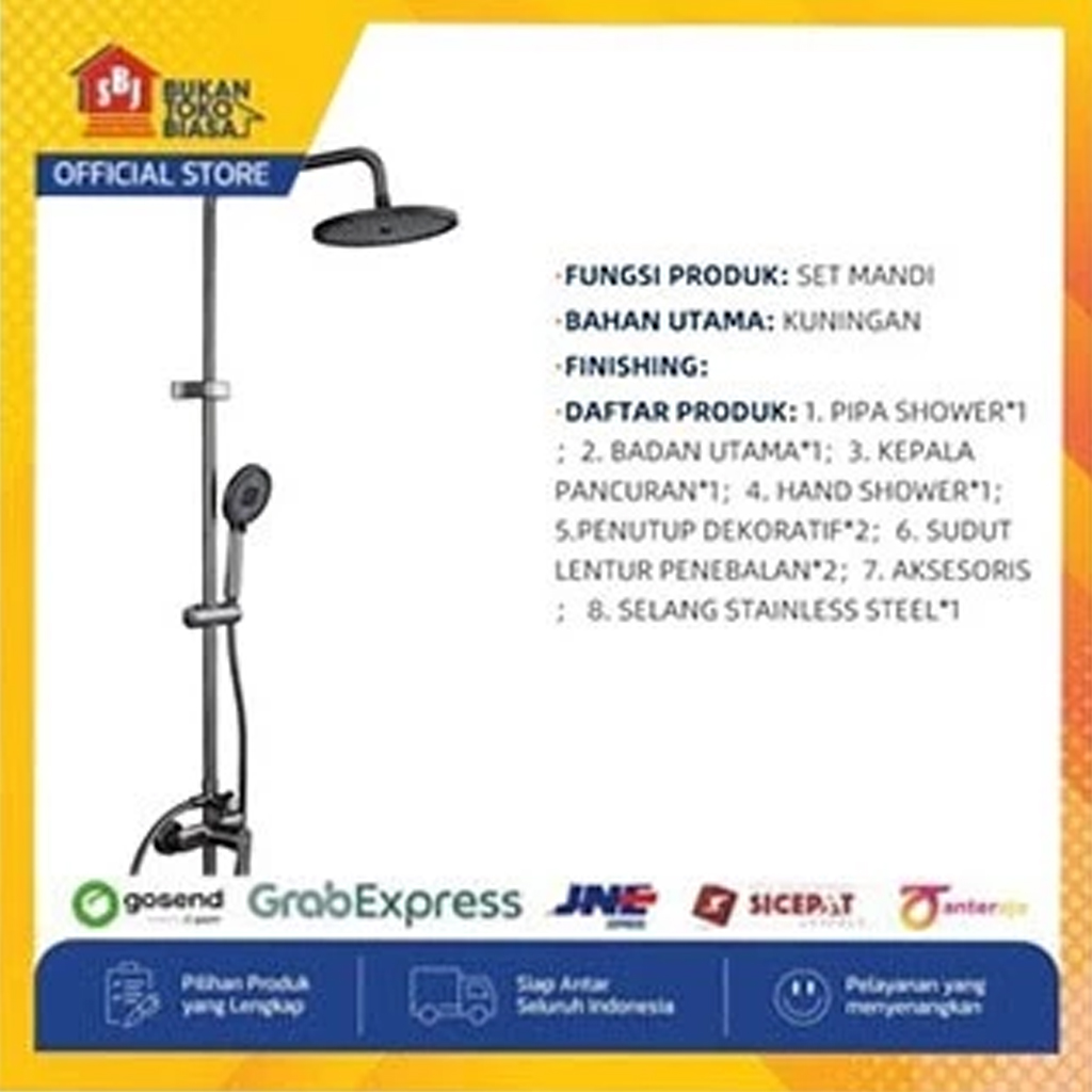 FRAP IF24012-9 Paket Lengkap Rain Shower Tiang Mandi Abu Abu Air Panas dan Dingin Mewah